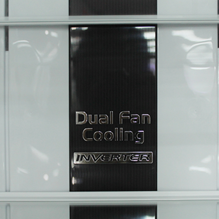 Hệ thống sử dụng 2 quạt thổi hơi lạnh độc lập, không khí lạnh tỏa đều và rộng khắp tủmột cách nhanh chóng.